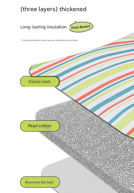 - Materials: Oxford Cloth (Outer), Pearl Cotton (Insulation), Aluminum Foil (Lining), Aluminum Alloy (Frame & Handles)