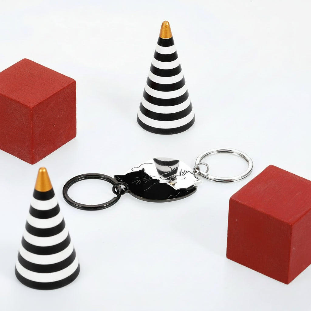 The Yin Yang Cat Couple Keychain Set features interlocking black and silver cat keyrings symbolising balance, harmony, and connection. Inspired by yin and yang, it represents complementary energies and makes a meaningful gift for couples, friends, and loved ones.